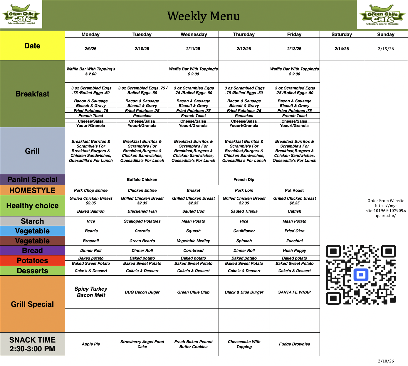 Welcome to The Green Chile Café. If you are searching for the best lunch in Artesia, you’ve found it! While we are located inside Artesia General Hospital, we are open to the public and proud to serve the entire community. Whether you want a hearty breakfast or a quick burger, you don’t have to compromise on quality to get a great deal.